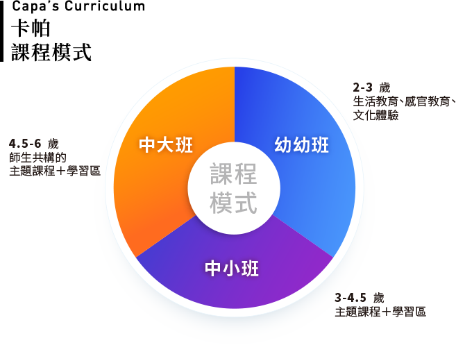 在卡帕,我們從孩子的生活與互動的過程發現孩子們關注的焦點事件或議題,並和孩子共同持續討論一段時間,將孩子的想法有組織的、有邏輯的、有知識性意義的連結起來,形成主要的概念,設計符合幼兒身心發展、具探究性、且統整六大領域(身體動作與健康 、語文、認知、社會、情緒、美感)的學習活動。