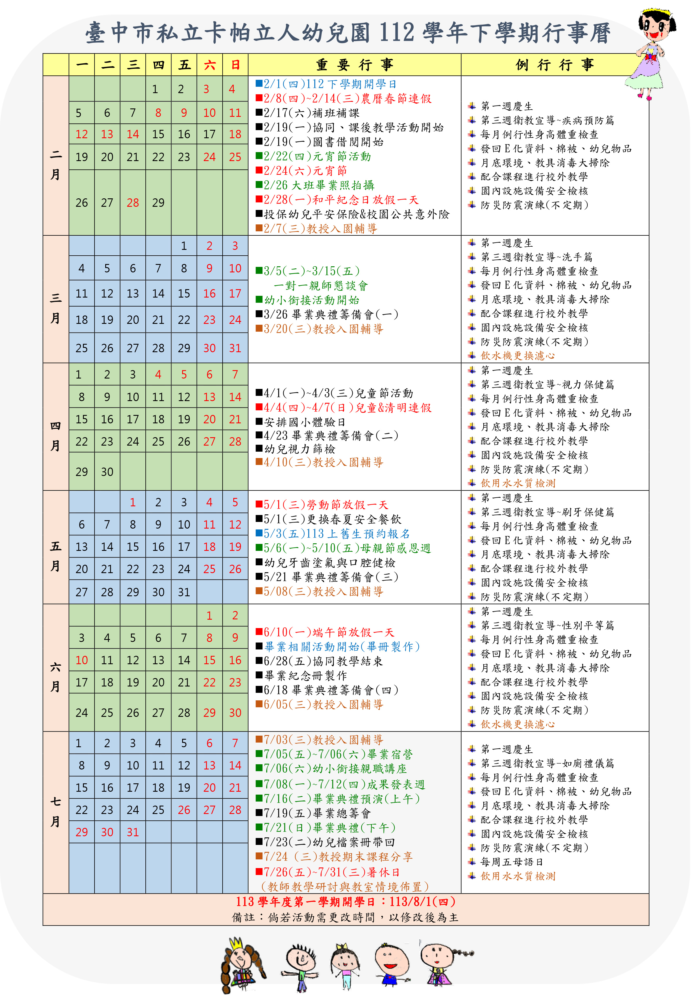 112 學年下學期行事曆
